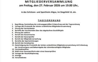 Einladung zur Jahreshauptversammlung am 27.02.2026 und den Spartenversammlungen