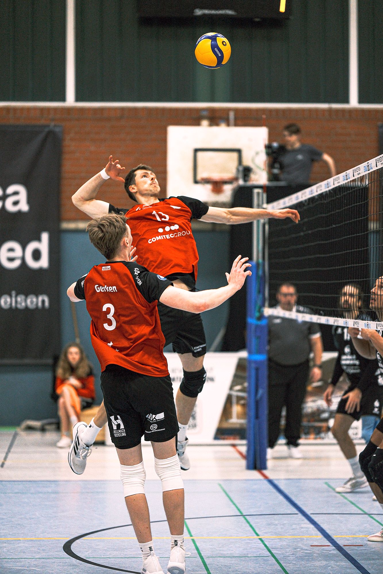 Foto im Text: Steffen Bauerochse, der später MVP-Silber erhielt, verwertet das Zuspiel von Mannschaftskapitän Benedikt Gerken (Nr. 3)