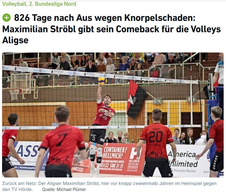 826 Tage nach Aus wegen Knorpelschaden: Maximilian Ströbl gibt sein Comeback für die Volleys Aligse
