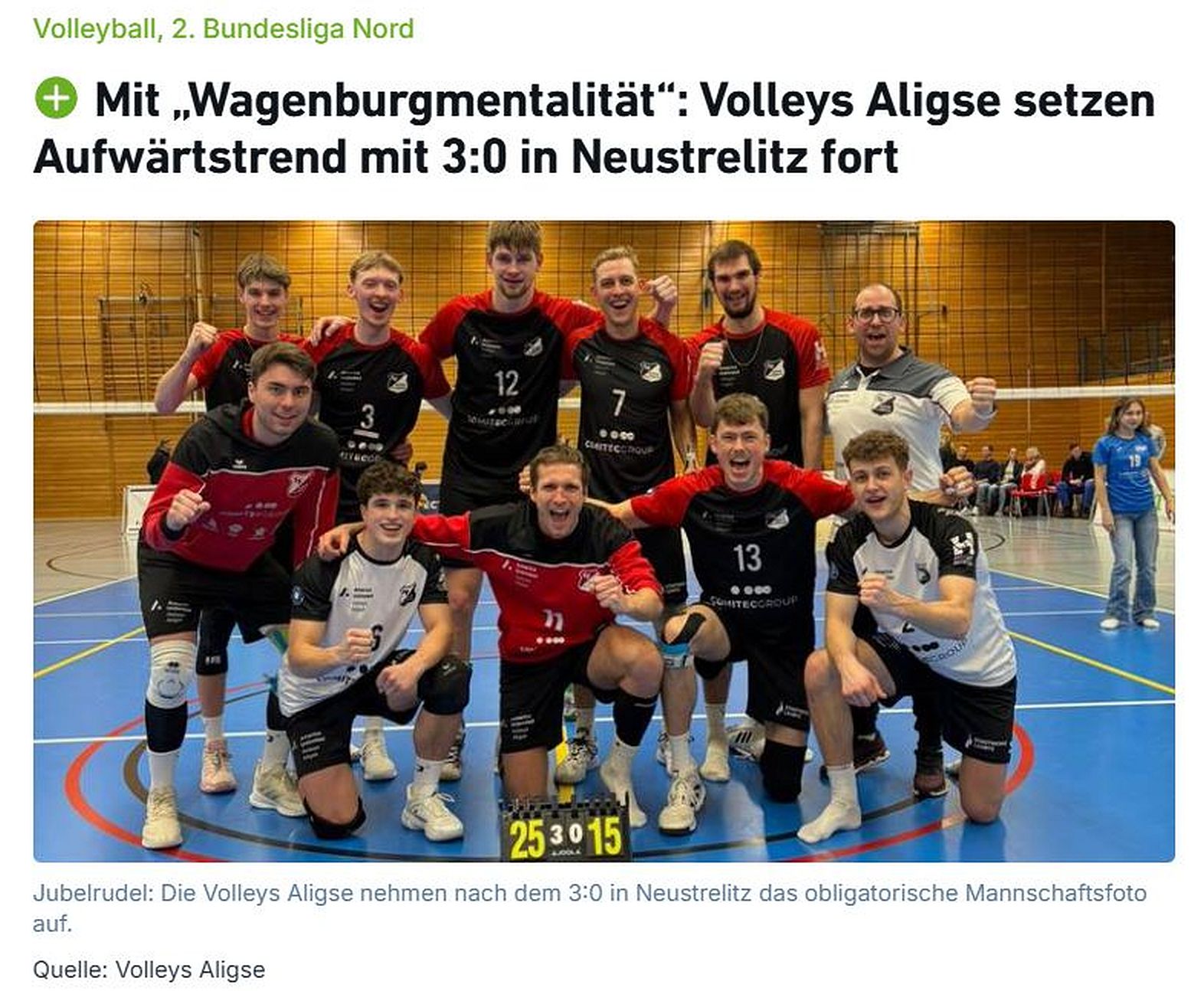 am 23.02.2026 unter der Überschrift „Volleys Aligse weiter im Aufwind“ auch in den Lokalbeilagen von HAZ und NP erschienen.